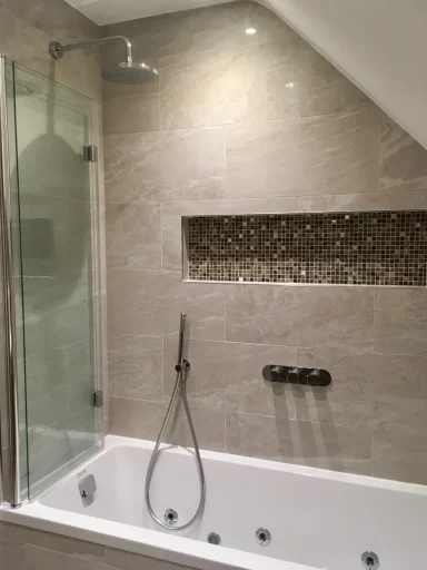 - Full bathroom tiling – Walls, floors, wet rooms, and feature walls